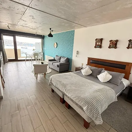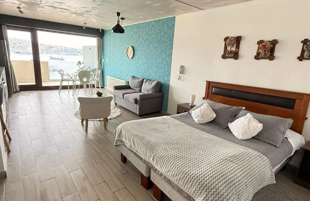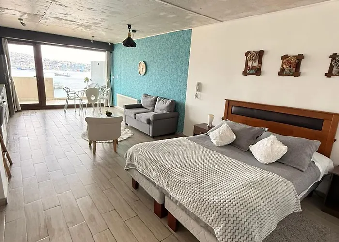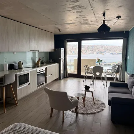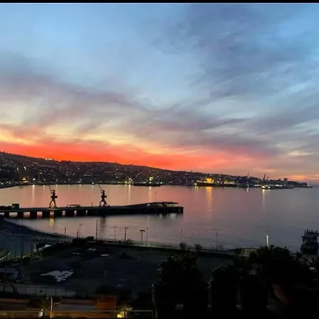 The beachfront Dpto Con La Mejor Vista De Valparaiso apartment offers proximity to such tourist attractions as the Ascensor Baron, situated approximately 5 minutes' walk away. Staying in this apartment, nestled a few steps from the Mirador Baron, guests can relax on a terrace.